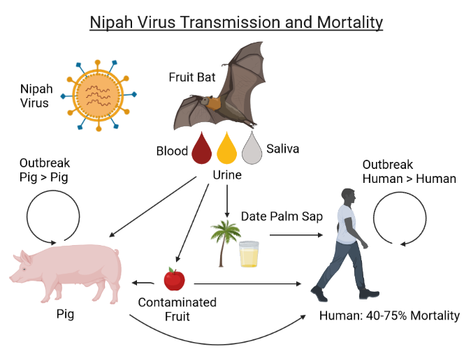 특히 박쥐가 활동하는 열대우림 지역 근처 마을에서는 비가열 과일이나 자연 발효 음료를 섭취하며 감염되는 사례가 빈번합니다.