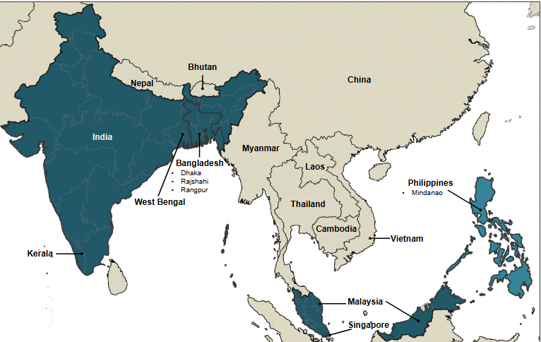 - 캄보디아, 미얀마, 태국 일부 지역