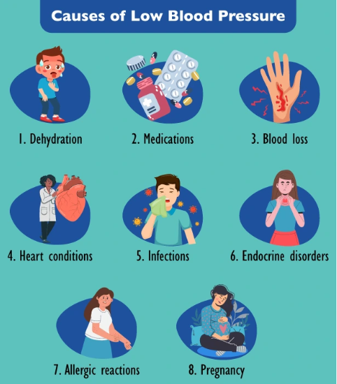 저혈압은 수축기 혈압이 90mmHg 이하, 이완기 혈압이 60mmHg 이하일 때를 말합니다. 주요 원인은 다음과 같습니다.