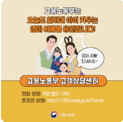 - 휴직 시작 후 1개월 이내 고용보험 홈페이지에서 육아휴직급여 신청